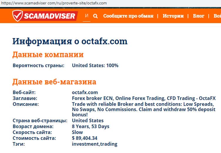 В связи с мошеннической и противозаконной деятельностью мошенников Окта ФХ их реальные руководители предпочитают анонимность дабы избежать ответственности со стороны правоохранительных органов. Информацию о самом же сайте аферистов OctaFX можно узнать с помощью портала scamadviser com.
