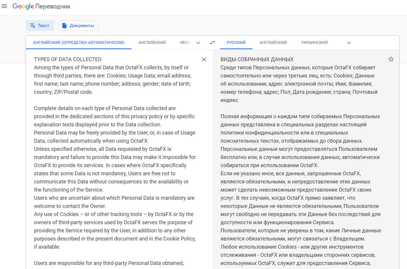 Далее в политике конфиденциальности аферистов Окта ФХ следует информация о том, что мошенники OctaFX собирают личную и персональную информацию у своей наивной клиентуры. Однако же шулера Окта ФХ не наводят точный ее перечень. На изображении, расположенном ниже, вы можете наглядно увидеть очередной раздел политики мошенников OctaFX.