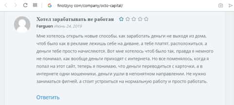 Ferguen призывает людей к тому, чтобы пошли на работу, а не были кормом для лохотронов подобно ОКТО КапиталОКТО Капитал пытается всеми силами заманить к себе в пирамиду наивных лохов