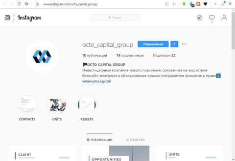 ОКТО Капитал с активной страницей в Instagram об инвестицияхПиар шайки карманщиков OCTO Capital через Facebook