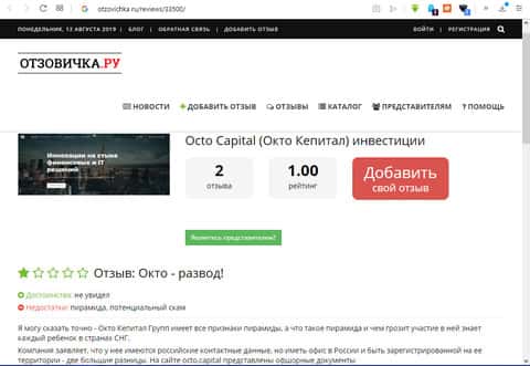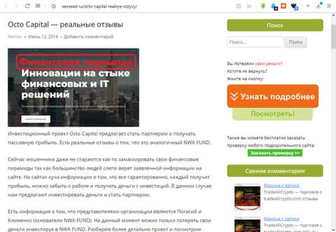 Полный обзор работы с финансовой пирамидой - мошеннической конторой ОКТО КапиталИнформация об ОКТО Капитал на сайте сеосид ру