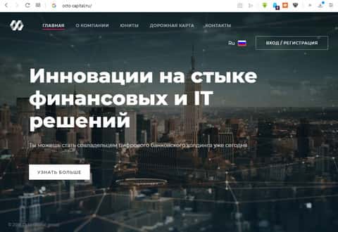 Обзор на главную страницу мошеннического сервиса ОКТО КапиталЗаявление от мошенников, сидящих в офисе ОКТО Капитал
