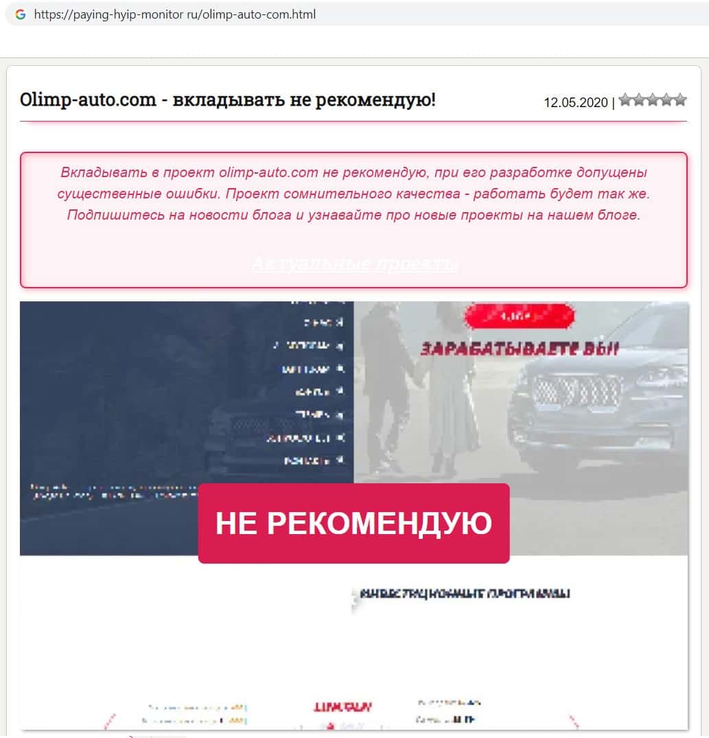 paying-hyip-monitor ru - сайт с информацией о жуликах Olimp-Auto