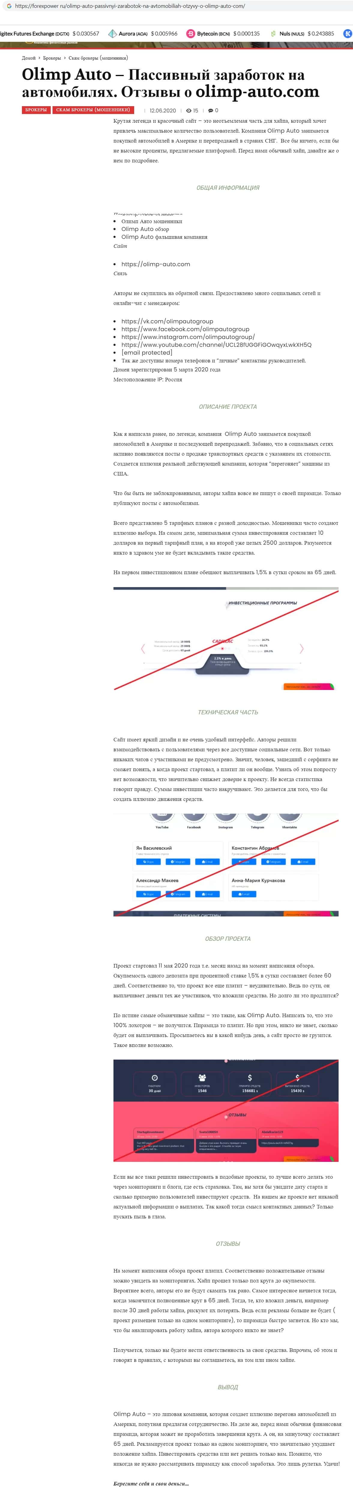 Ссылки на источники информации о конторе финансовых разводил Olimp-Auto: