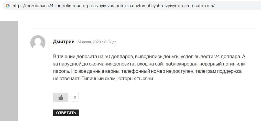 - Отзывы интернет - пользователей о конторе финансовых аферистов Олимп Авто