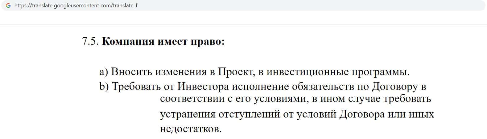 Так же фирма кидал Олимп Авто указала, что может изменять свои инвестиционные проекты, но так же имеет право требовать от клиента исполнения новых условий, даже если он с ними не согласен.