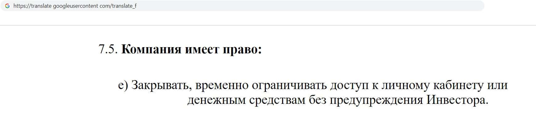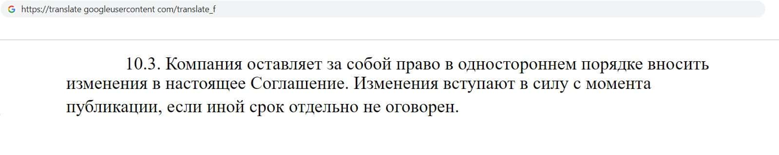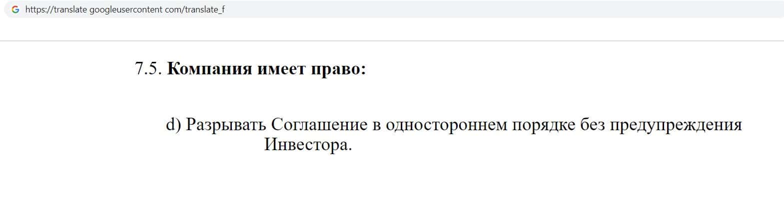 А вот очень интересный пункт, в котором компания прямо говорит о том, что может расторгнуть договор в одностороннем порядке без предупреждения другой стороны.