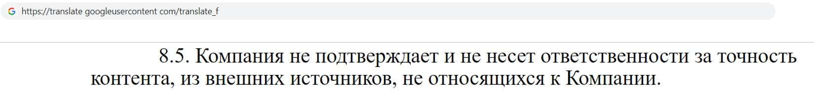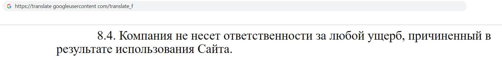 Ну и конечно же фирма финансовых разводил Olimp-Auto указала, что отказывается от любой ответственности за причинённый ущерб клиенту при использовании их сайта.