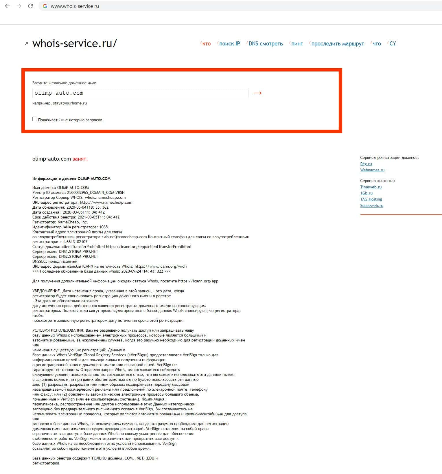 Кому принадлежит домен фирмы мошенников Олимп Авто?
