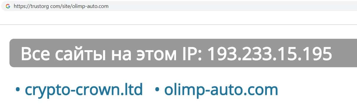 Компания кидал Olimp-Auto делит свой айпи с другим сайтом