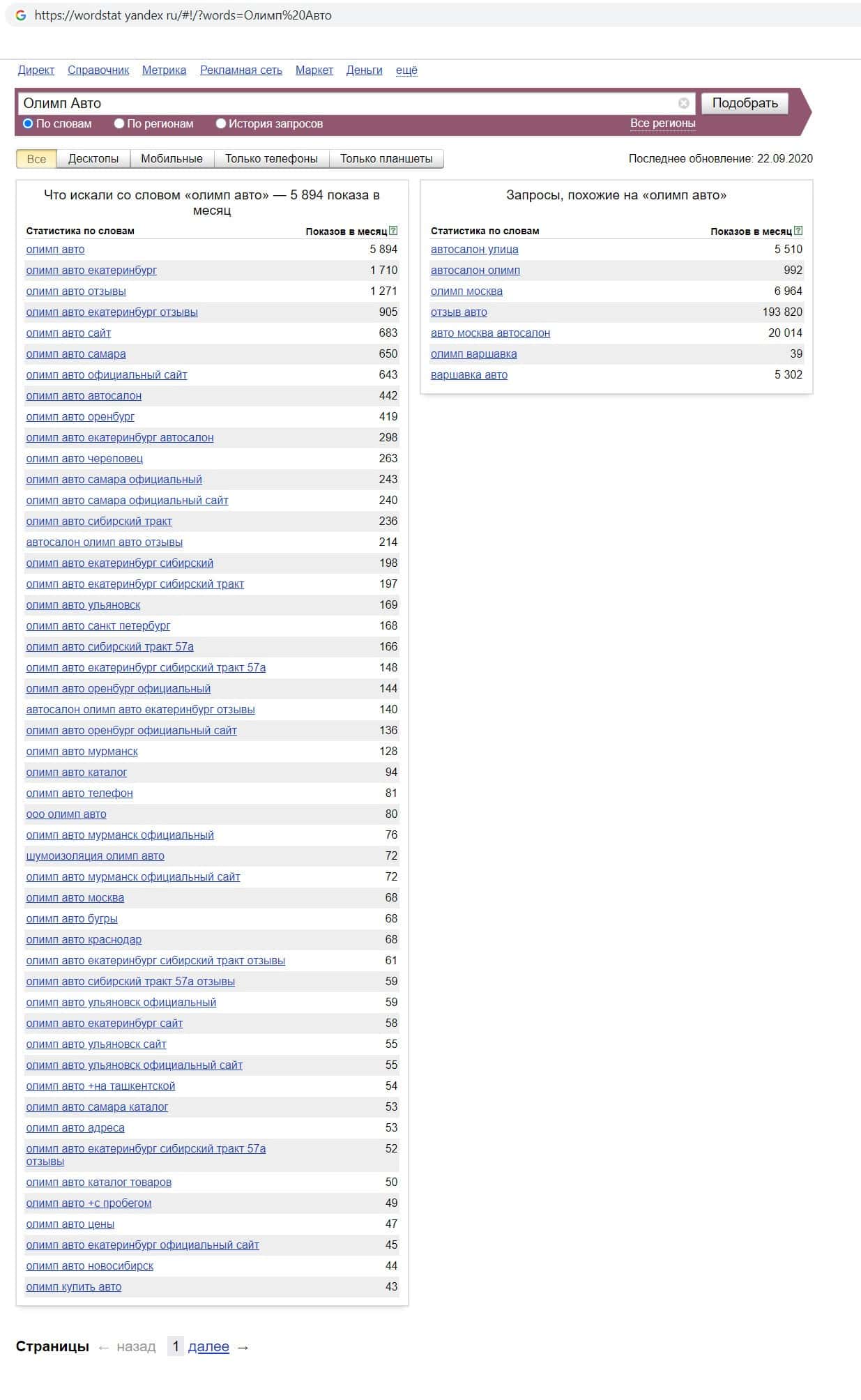 Так же мы решили проверить количество запросов компании жуликов Olimp-Auto по русскоязычному названию фирмы, а именно "Олимп Авто". 5894 раза пользователи выполняли запрос.
