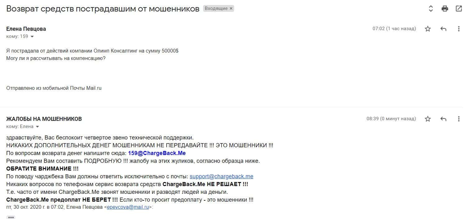 Относительно перспектив получить свои вложенные деньги назад от РАЗВОДИЛ Олимп Консалтинг - пишите письмо на почту [email protected]