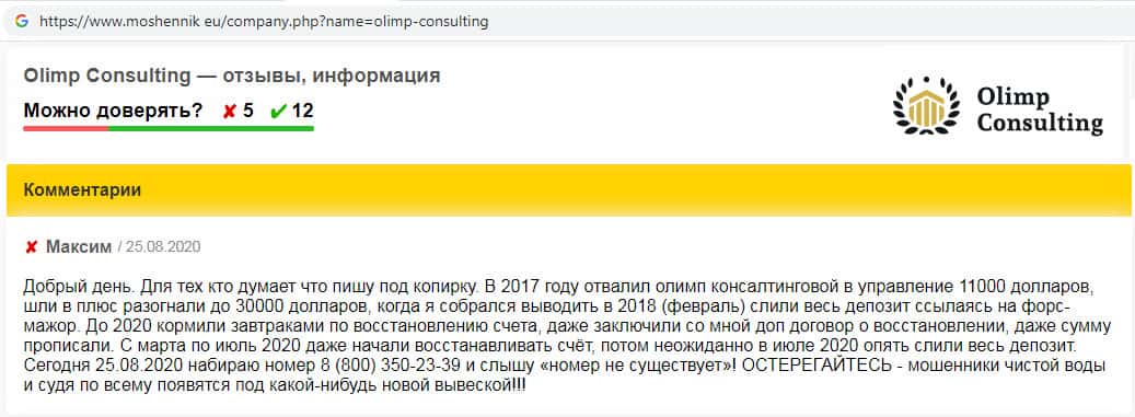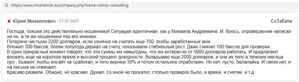 Olimp Consulting - обзоры жуликов на других интернет-ресурсах