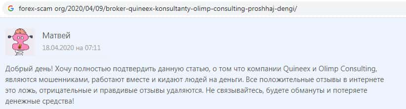 - Аферисты Olimp Consulting работают сообща со скам-брокером Quineex