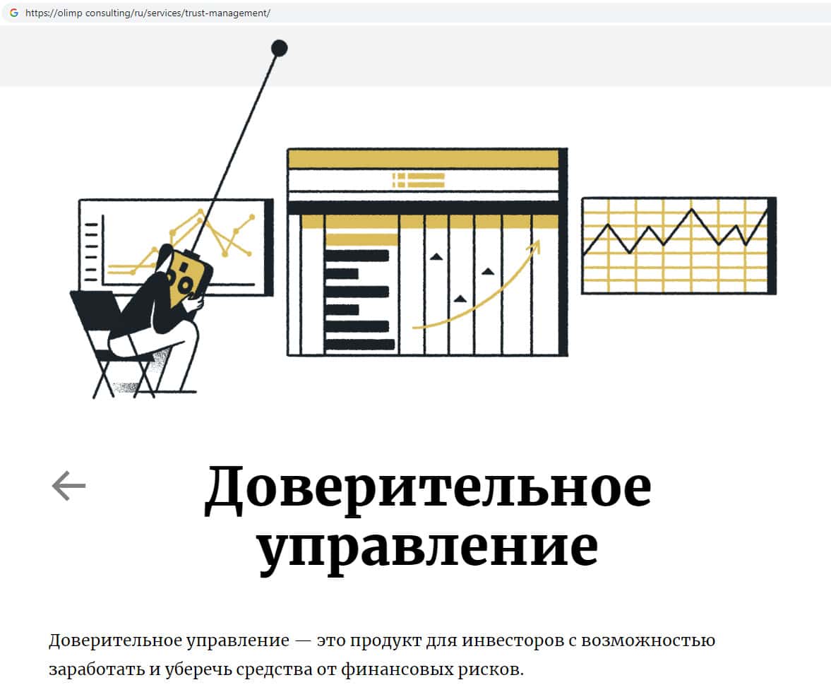 Мошенники Олимп Консалтинг прикрываясь тем, что якобы предоставляют услуги доверительного управления, разводят людей на немалые суммы денежных средств.