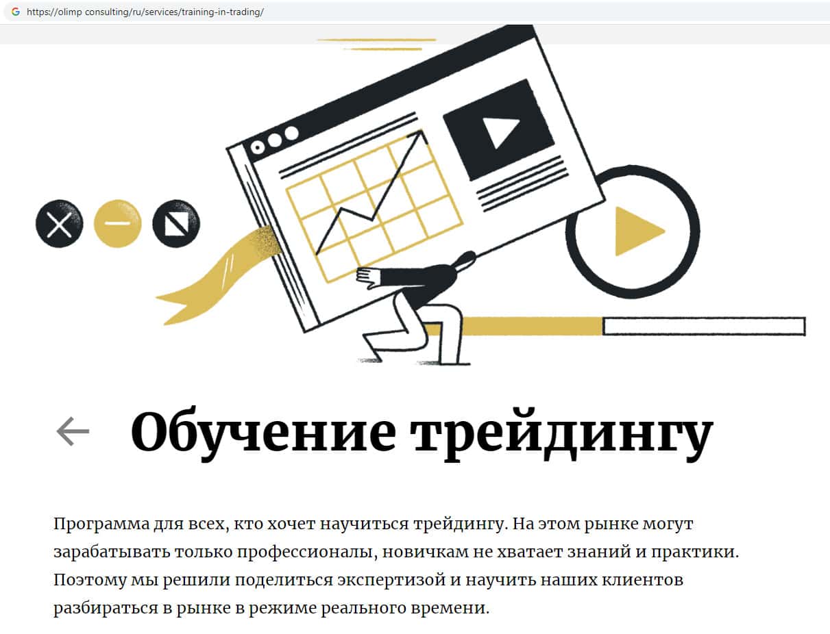 Также обманщики Olimp Consulting предлагают обучаться псевдо-науке, а именно трейдингу, мотивируя тем, что так якобы можно стать профессионалом.