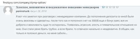 Аферисты Олимп Опцион нахамили человеку в трубку