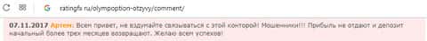 Бывший клиент не советует открывать счет в лох-конторе Олимп Опцион