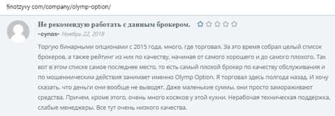 По словам бывшего клиента, контора OlympOption вообще не выводит деньги