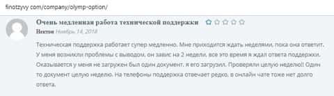 - Плохая работа технической поддержки Олимп Опцион тормозит процесс вывода денег