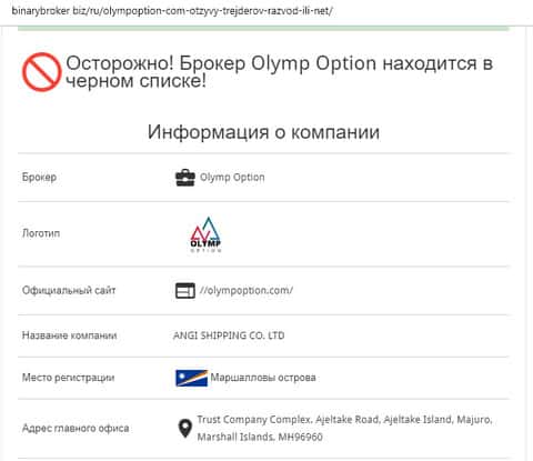 Лохотрон OlympOption находится в черном списке авторитетного веб-ресурса