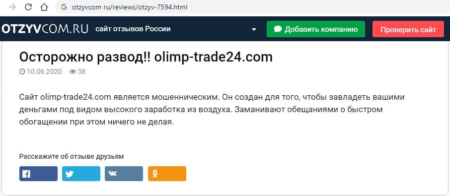 - Обзоры на жуликов Олимп Трейд 24 на других ресурсах
