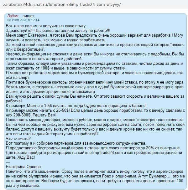 - Люди не доверяют мошенникам Olimp-Trade24 и называют лохотроном