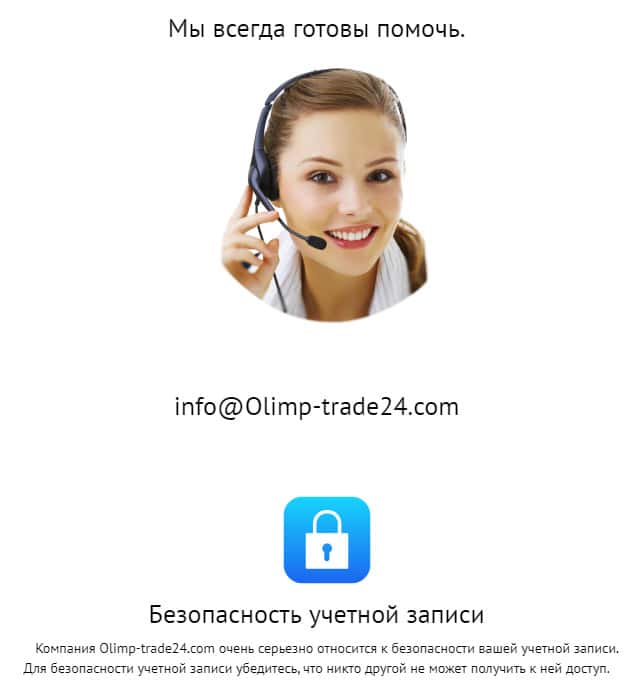 Связаться с мошенниками Olimp-Trade24 вы можете только по адресу электронной почты, а именно:
