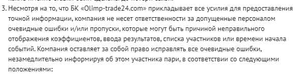 Букмекерская контора Олимп Трейд 24 не несет ответственности за несоответствие предоставляемой информации клиентом. Под этим соусом они могут сделать, что угодно.
