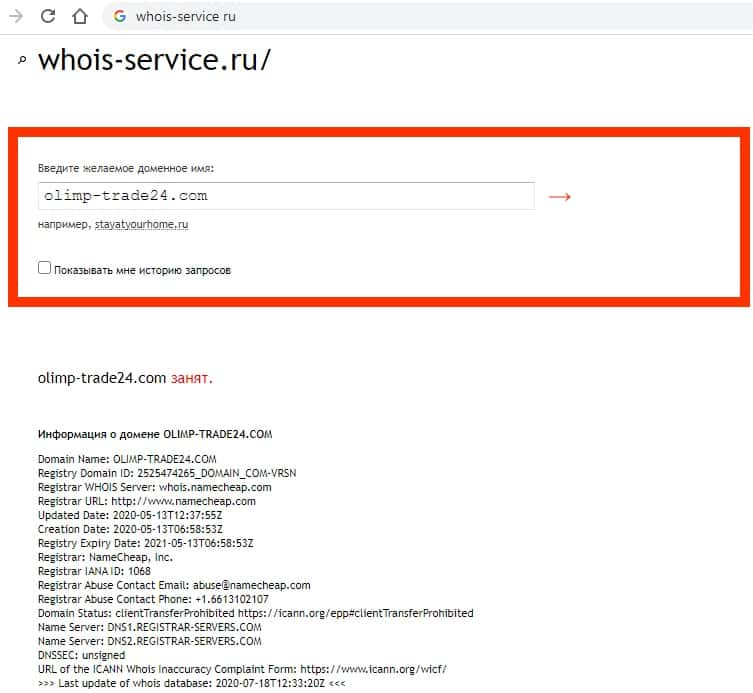 - Данные о владельце домена мошенников olimp-trade24 com скрыты