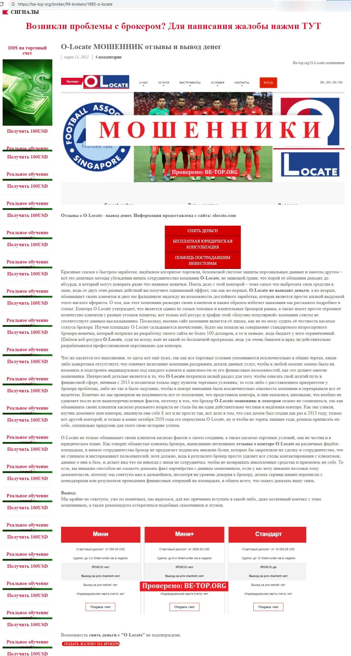 Проходимцы, создавшие шулерскую консультационную компанию OLocate, располагаются в Сингапуре, что помогает им действовать не совсем легально, наживаясь на форекс трейдерах.