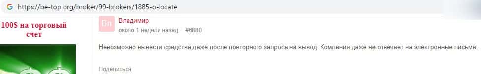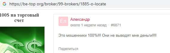 Трейдер пожаловался на то, что инвест-компания OLocate - обыкновенная мошенническая контора, поскольку ее руководство кидает клиентов, не позволяя им вывести свои же средства.