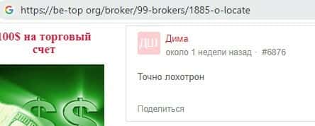 Мужчина на следующем скриншоте в своем отзыве назвал консультационную организацию OLocate никем иным, как лохотроном, который разводит вкладчиков на вложения.