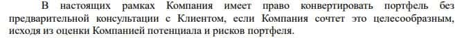 В договоре также прописано, что OLocate имеет право конвертировать портфель без предварительной консультации с клиентом, если контора сочтет это целесообразным. Бред.