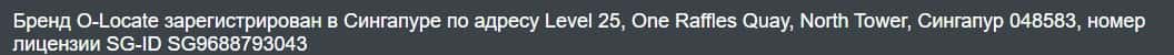Шулерская форекс компания OLocate не удосужилась получить лицензию у финансового регулятора