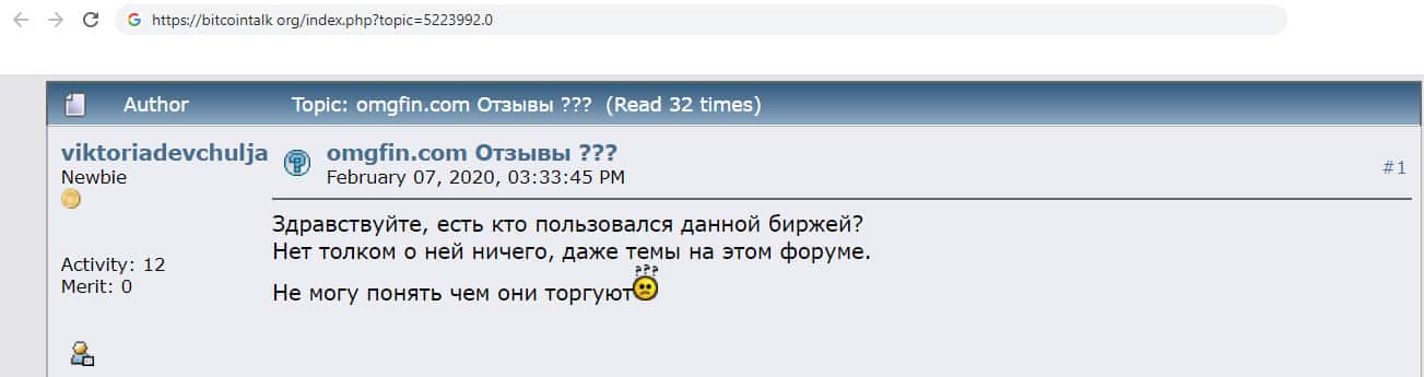 bitcointalk org - сайт с отзывом о мошенниках OMGFIN