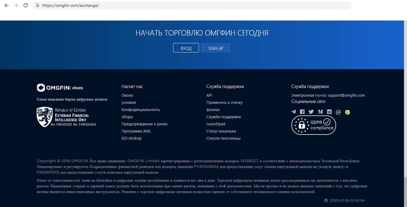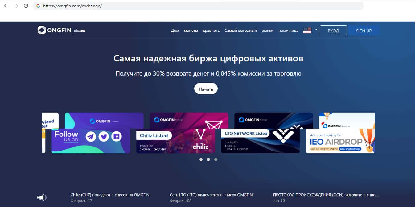 Главный интернет ресурс компании махинаторов ОМГ ФИН представляет собой дешёвый коммерческий проект, создатели которого не захотели вкладывать много средств, и решили сделать на скорую руку. На сайте практически ничего нет, только громкие слова о том, что данные разводилы являются самой надёжной биржей цифровых активов.