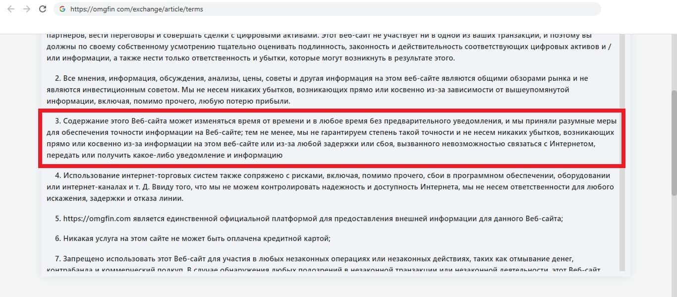 - Возмутительный пункт договора лохотронщиков OMGFIN