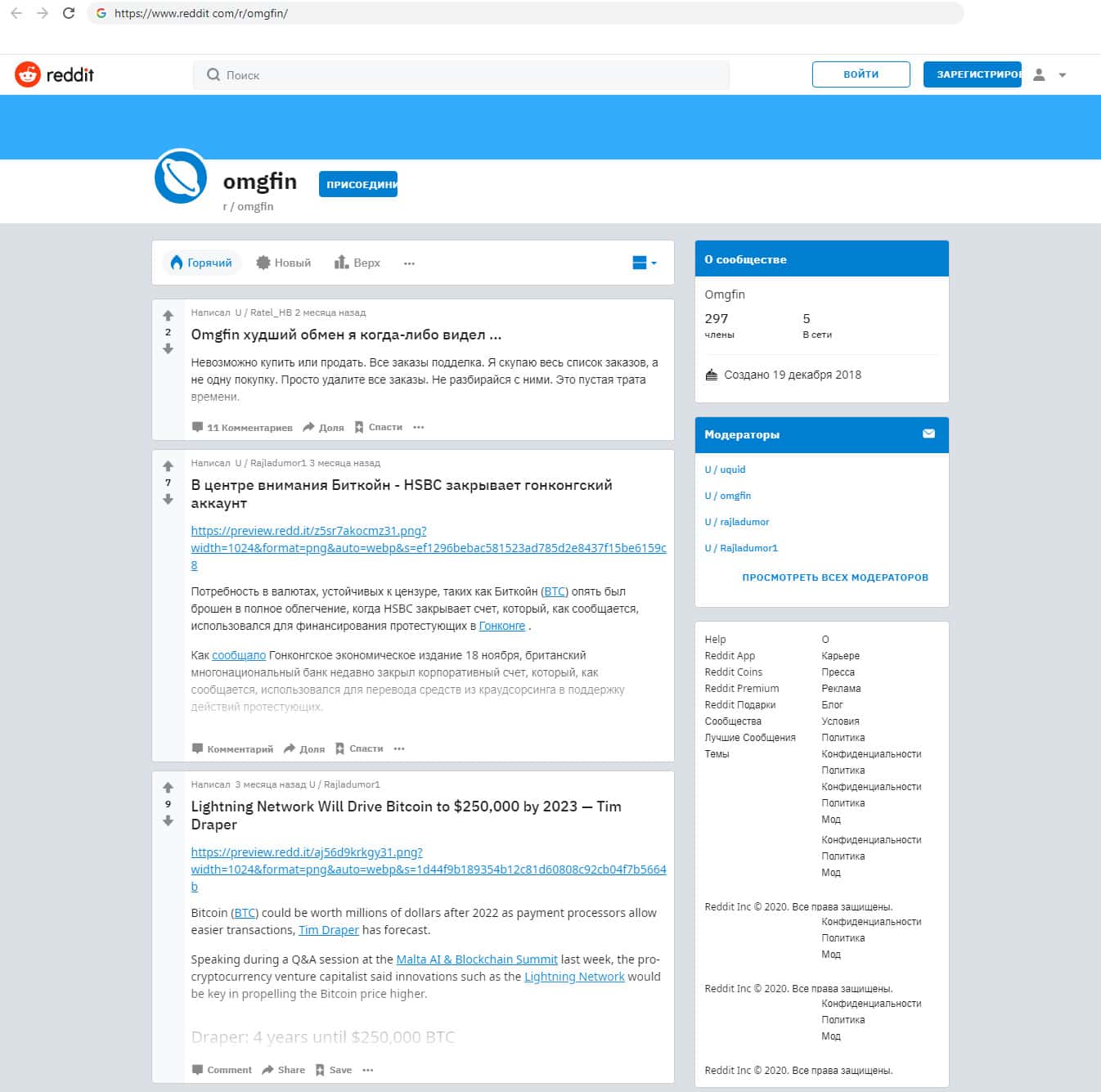 Мошенники OMGFIN так же создали страницу на социально новостном сайте Reddit. Там так же мошенники собрали почти 300 подписчиков, которым постоянно втирают нарисованные новости о своей компании, надеясь на то, что кто то их подписчиков заинтересуется данной компанией и решит инвестировать, и тогда фирма жуликов завладеет его деньгами.