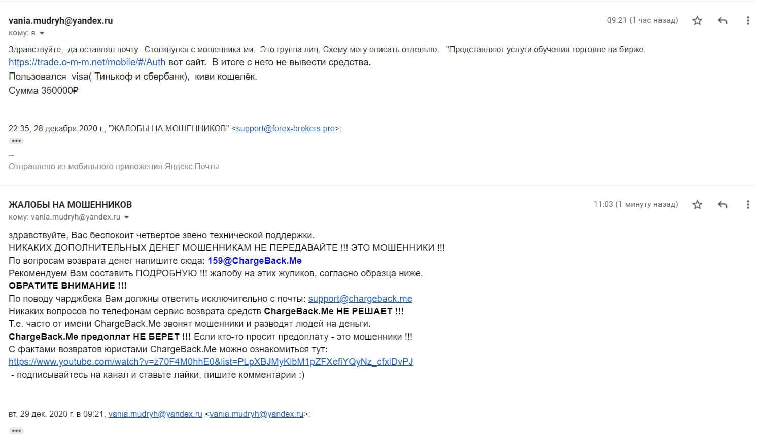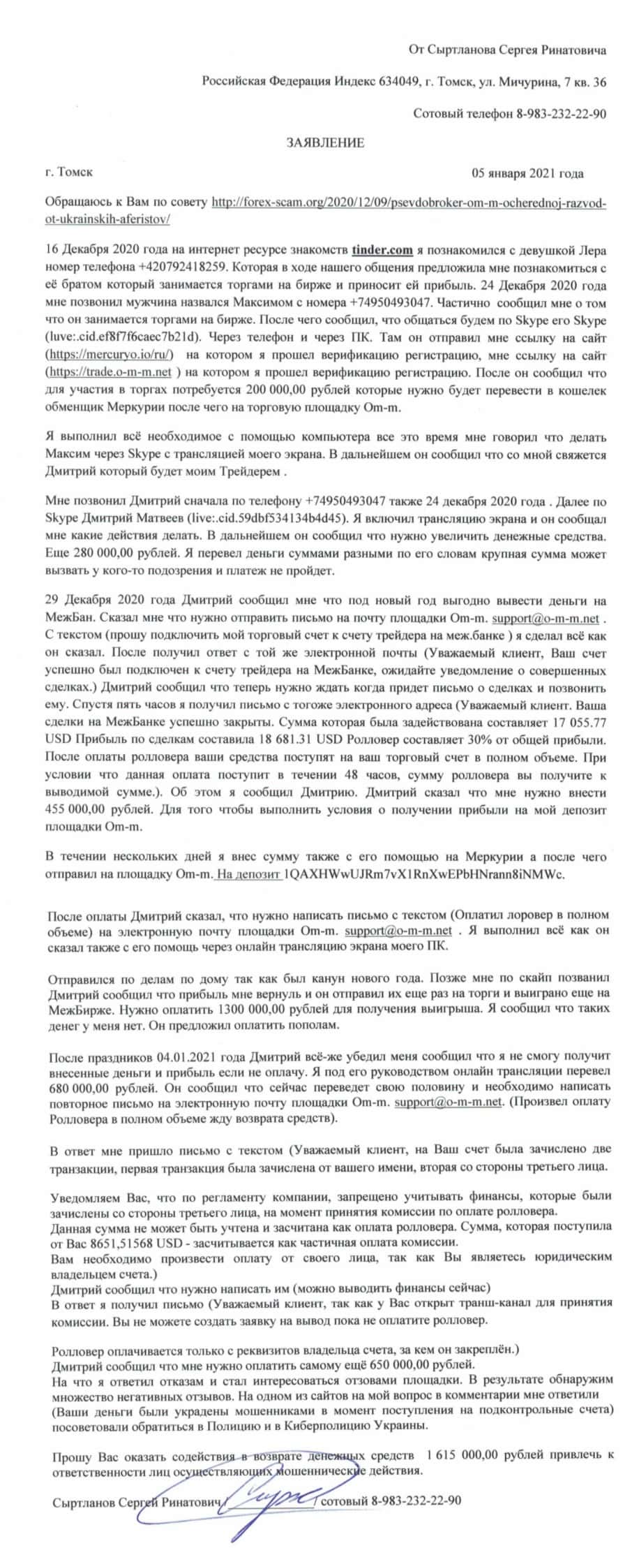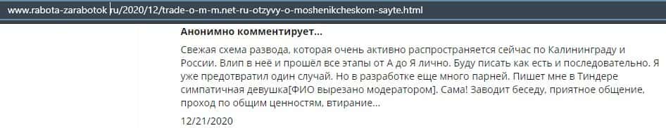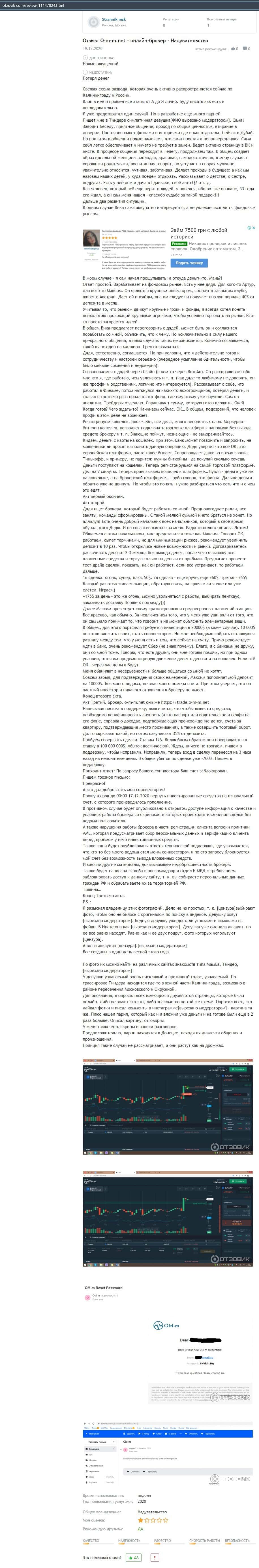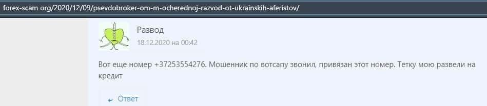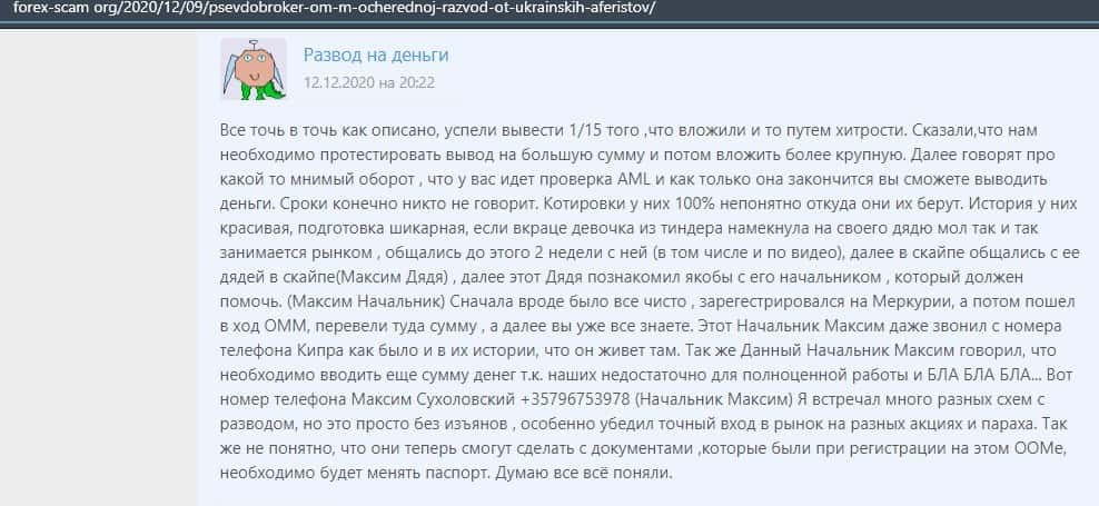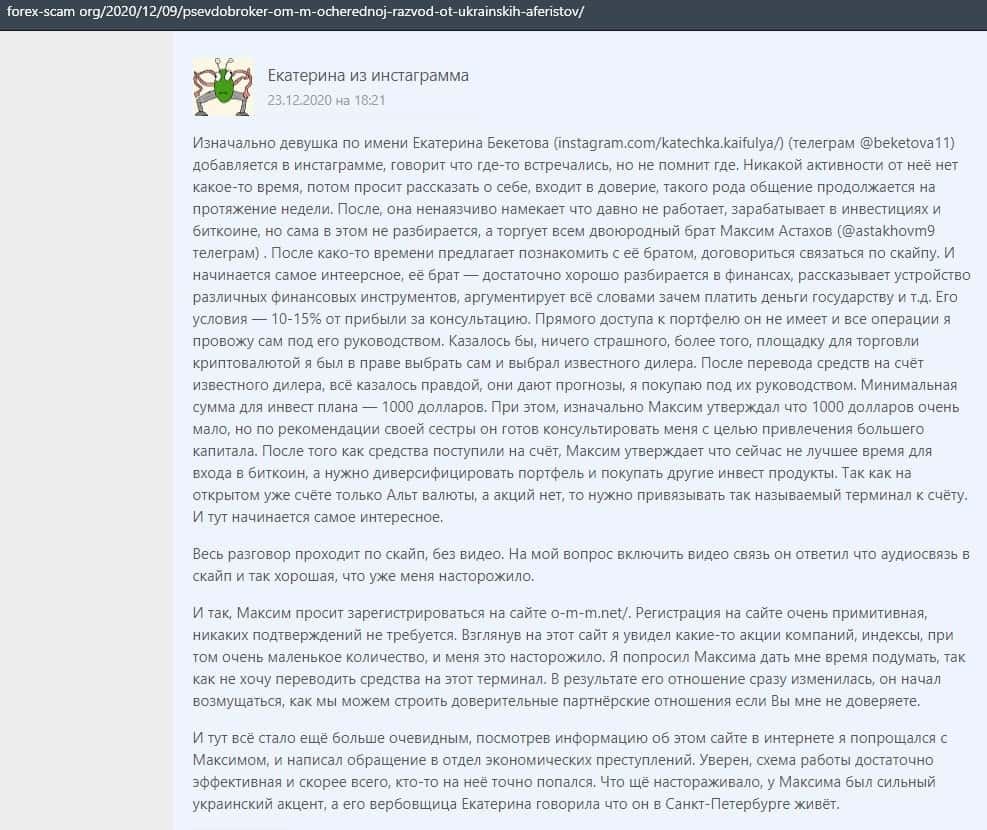 - Развернутый отзыв о действиях мошенников ОМ-м
