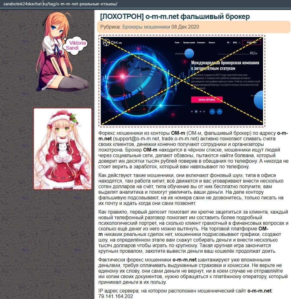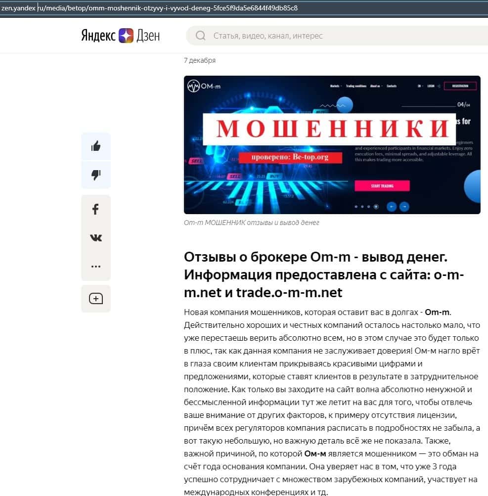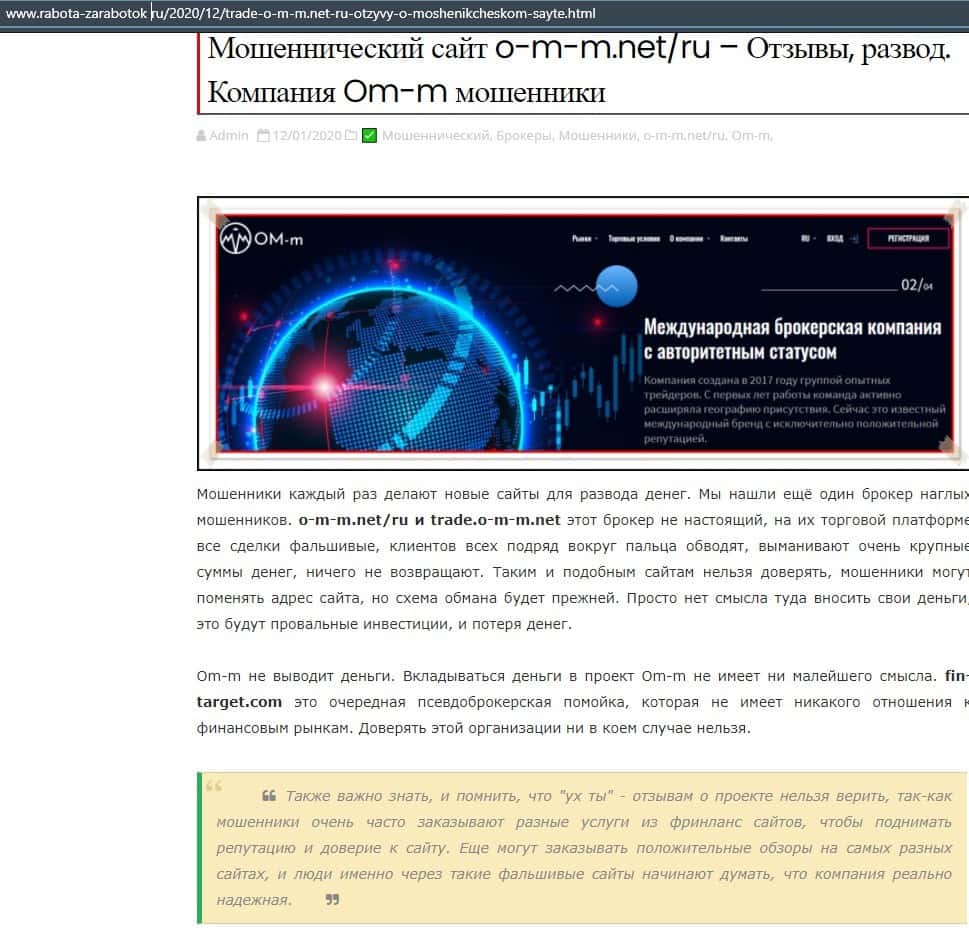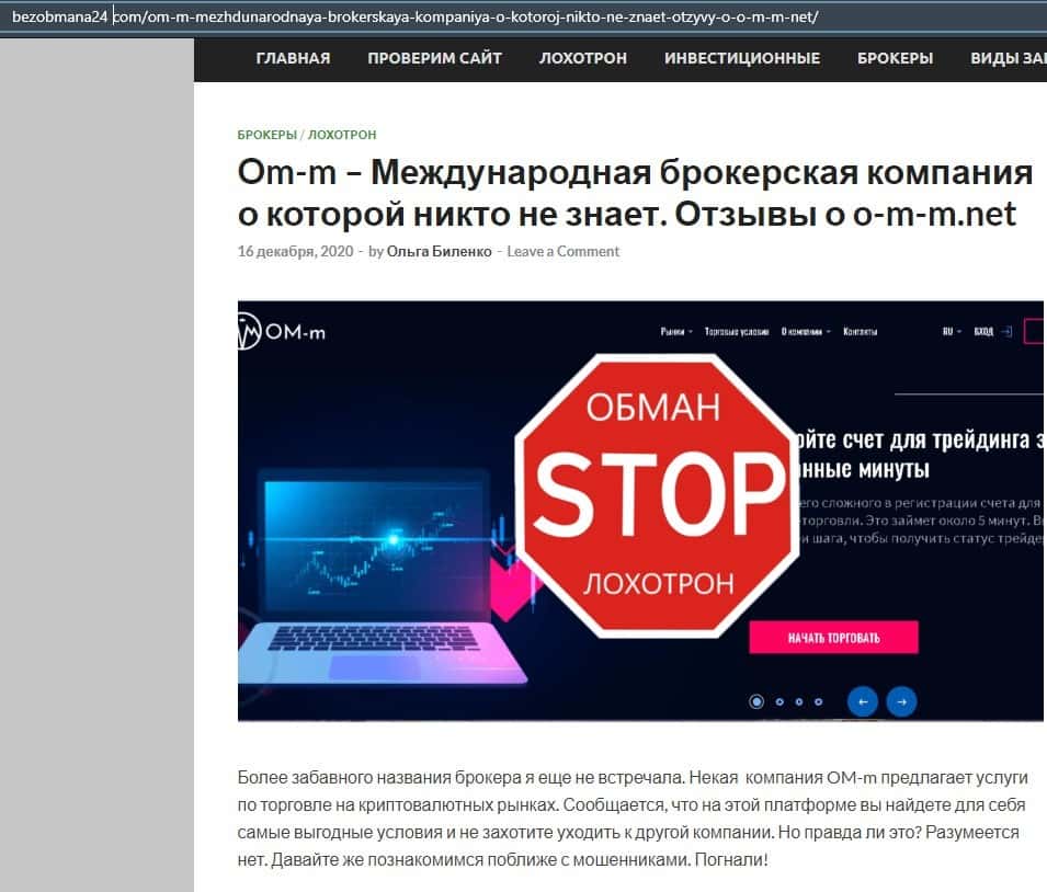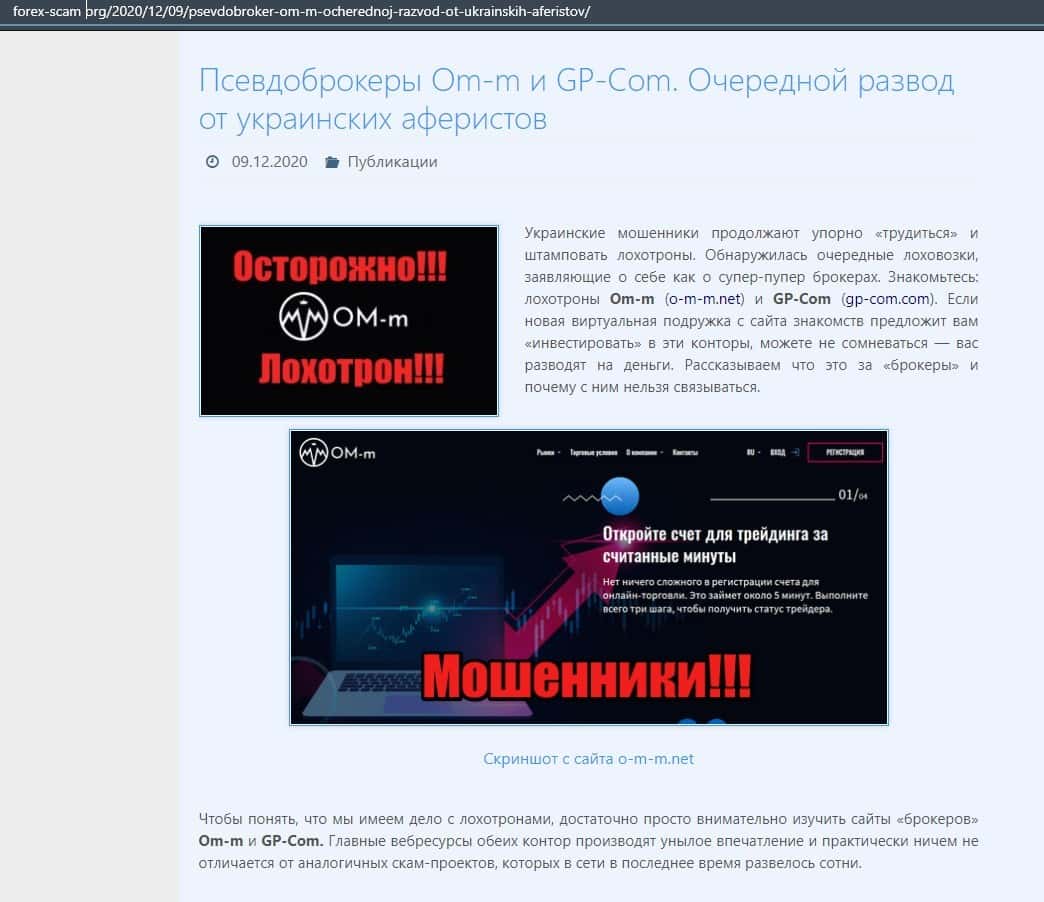 Далее представлена статья о мошеннической конторе ОМ-м. Там сказано, что этим лохотроном заведуют украинские форекс-мошенники, которые хотят отобрать у вас деньги.
