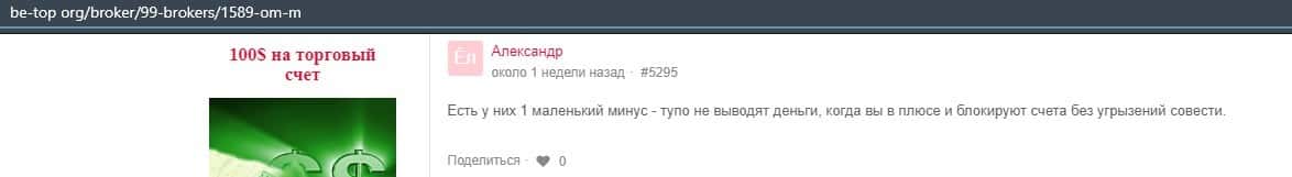 Человек описал, что мошенническая контора ОМ-м тупо не выводит деньги своим клиентам, да и если вы вдруг начнете зарабатывать, то они заблокируют ваш счет без указания причины.