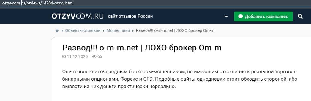 - Отзывы о мошеннической конторе ОМ-м