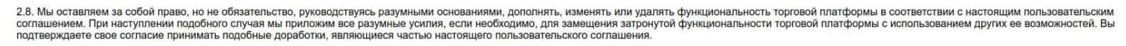 В одной из частей дырявого договора, контора ОМ-м оставляет за собой право в любой момент изменить условия и торговый функционал платформы не считаясь с клиентами.