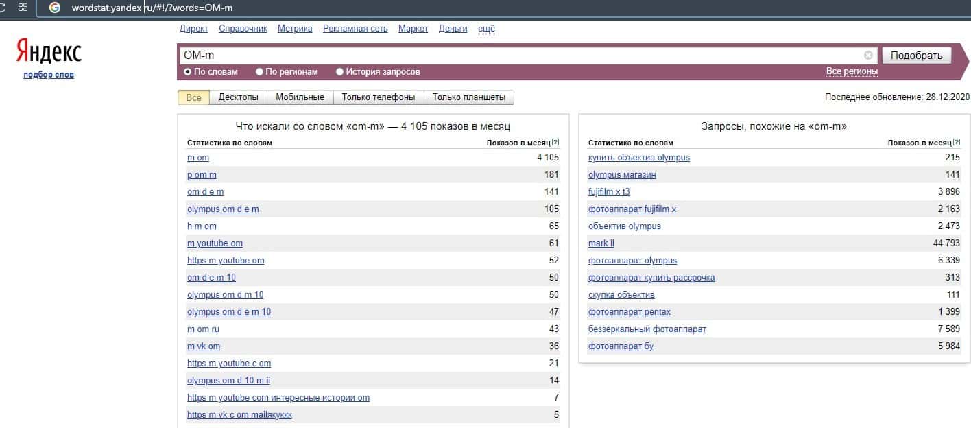 Лохотронская контора со своим русскоязычным брендом "ОМ-м" немного получила запросы в поисковой системе Яндекс и их насчиталось всего-то 85 показов за месяц.