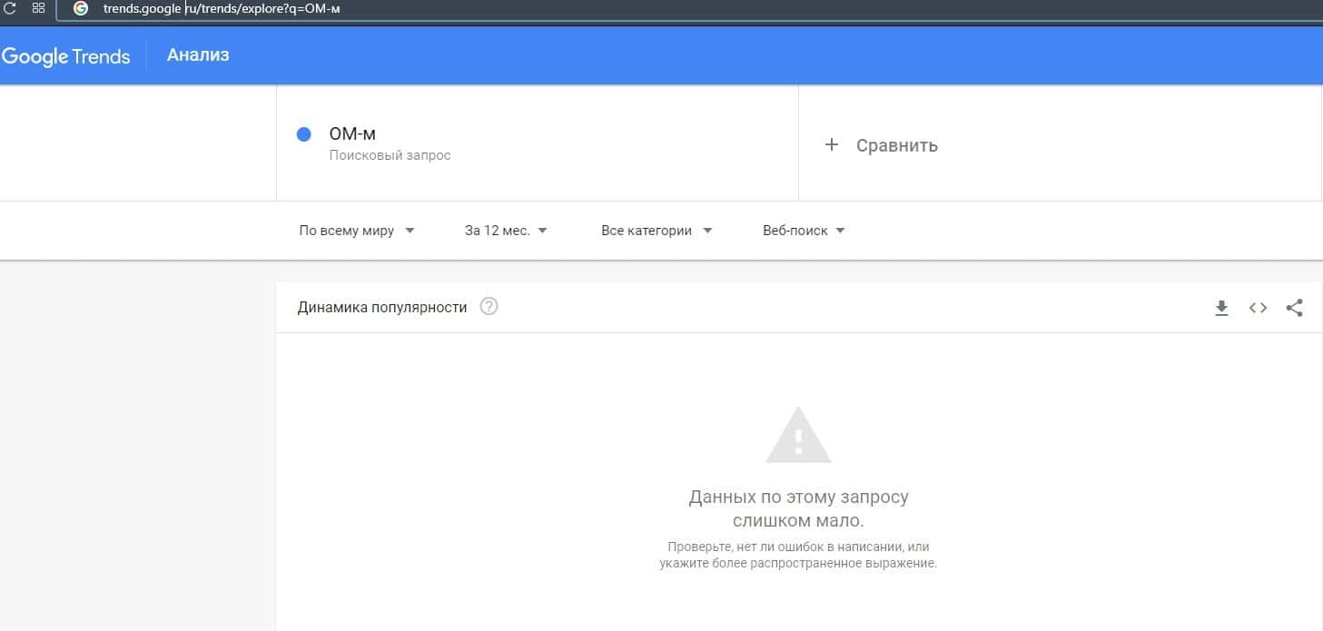 Русскоязычный бренд "ОМ-м" не был найден ни разу в поисковой системе Гугл, что показывает их ничтожную популярность в сети интернет.
