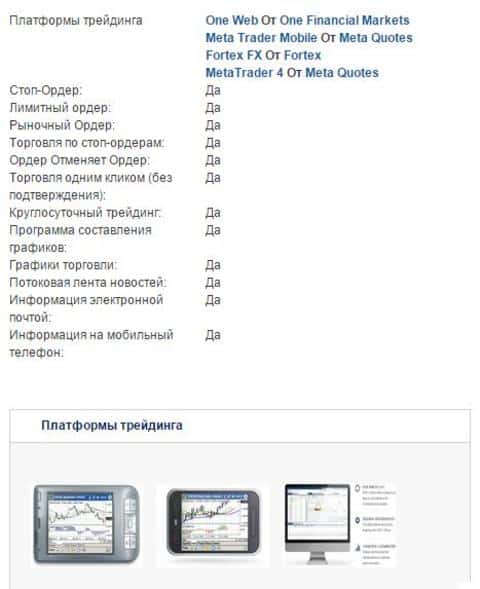 Дилинговый центр One Financial Markets - это пример форекс брокера. Для торговли на валютном рынке форекс существует большое количество различных дилинговых центров и One Financial Markets - один из них. К сожалению, большинство брокеров по всему миру работает по принципам кухни. Это проявляется в манипулировании торговым терминалом, невыплате профитов, нарушении брокером условий договора торговли, некачественном обслуживании клиентов и непрофессиональным персоналом. В сети есть специализированные форумы, где можно почитать отзывы реальных клиентов о сотрудничестве с тем или иным ДЦ. Часто среди них можно встретить и заказные. Также существуют рейтинговые порталы форекс брокеров, но и на них, к сожалению, можно купить место. О дилинговом центре One Financial Markets пока мало информации в сети, но по мере ее появления, она будет добавляться в данную статью. Пока же, стоит быть крайне бдительным, доверяя свои деньги такому малоизвестному в России брокеру.