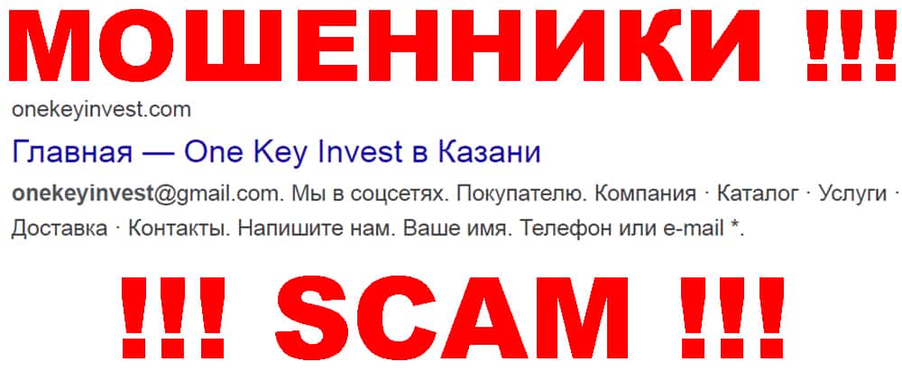 Ван Кей Инвест - очередные мошенники сети интернет, которые занимаются наглым разводом наивных пользователей сети интернет под довольно банальным и типичным предлогом инвестиций, в ходе которых жулики One Key Invest оперативно кидают на деньги свою клиентуру. В связи с этим иметь дело и сотрудничать с аферистами Ван Кей Инвест не рекомендуем !!!