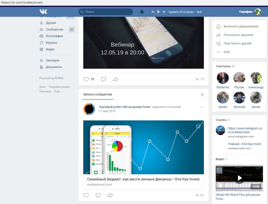 Имеется у аферистов One Key Invest и страница в социальной сети Вконтакте, где у шулеров Ван Кей Инвест размещена довольно стандартная и типичная лапша на уши и имеется несколько десятков подписчиков. На изображении, расположенном ниже, вы можете наглядно увидеть внешний вид страницы аферистов One Key Invest в социальной сети Вконтакте.