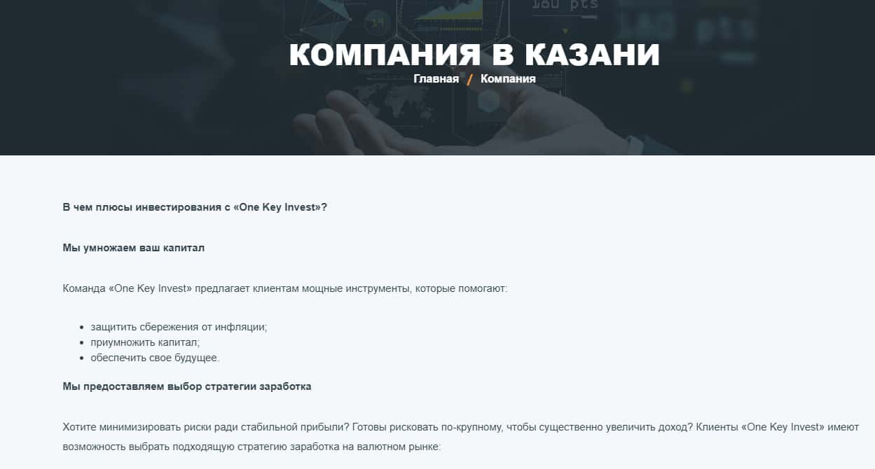 onekeyinvest com - официальный сайт аферистов One Key Invest